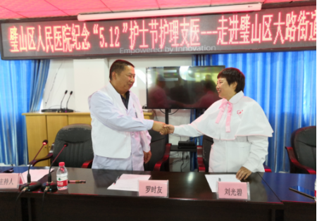 2019年5月8日,在護士節即將來臨之際,重慶市璧山區護理學會分隊、重慶市璧山區人民醫院分隊,聯合開展“志愿服務基層行”活動,護理志愿者5人主動幫扶大路街道衛生院,受助人員43人。