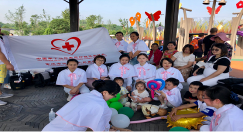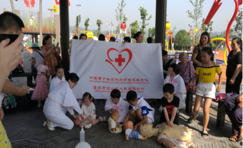 6月1日,12名志愿者在璧山楓香湖兒童公園,開展“愛在六一·救在身邊”醫(yī)療健康保障活動,持續(xù)時間8小時。為千里迢迢來園游玩的上萬游客,開展成人及小兒心肺復蘇技術普及163人、防熱避暑教育115人、外傷救護26人、健康咨詢34人、檢測血壓78人,受益人數(shù)416人。對急救技術和健康知識,不時有游客拍照錄音,也有小朋友穿起“愛心批肩”,強烈要求加入南丁格爾志愿者隊伍。