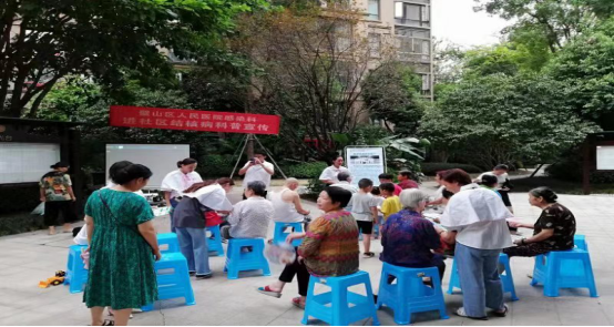 七、內容:六名志愿者進入金科小區開展形式多樣的結核病預防宣傳活動,現場播放動畫結核宣傳視頻、健康咨詢、義診義檢,發放結核防治手冊130份。