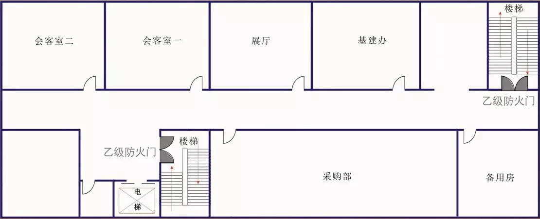 (2)疏散走道在防火分區(qū)處應(yīng)設(shè)置常開甲級防火門。