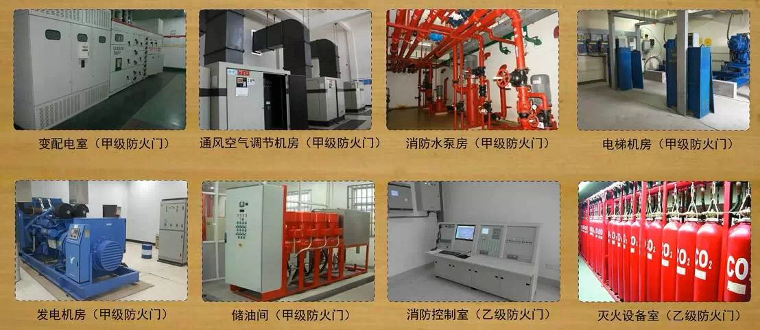 重要設(shè)備間需要設(shè)置防火門,以保護設(shè)備安全,常用的設(shè)備間有:變配電室(甲級)、通風空氣調(diào)節(jié)機房(甲級)、消防水泵房(甲級)、電梯機房(甲級)、(發(fā)電機房甲級)、儲油間(甲級)、消防控制室(乙級)、滅火設(shè)備室(乙級)。