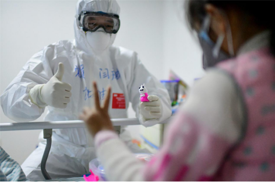 這個情景深深刺痛了閆慶凱的內心?!拔乙粫r想不到該說些什么來安慰她,想要給她一個擁抱,但不被允許。只能向她豎起大拇指,夸她是個堅強的孩子。”閆慶凱回憶到,一開始,女孩配合治療并不積極,動不動就流眼淚,為了和她打近關系,閆慶凱托人從外邊買來各種玩具。每次他進入隔離區,女孩就能收到禮物。