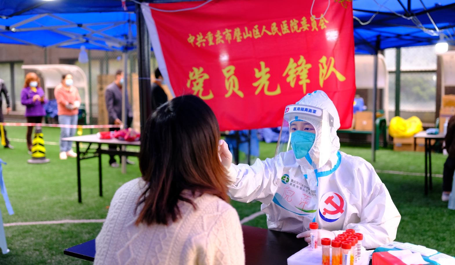 黨員先鋒倪萍正在核酸采樣