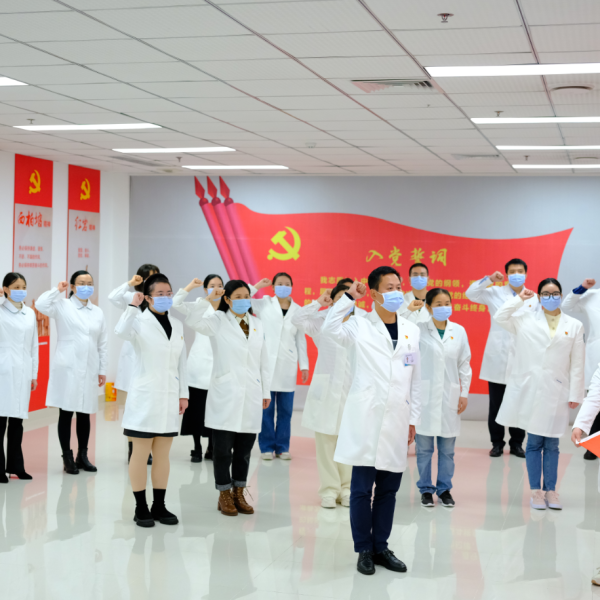 黨旗所指,行動所向。連日來,全區疫情形勢嚴峻復雜,防控工作處于最吃勁、最緊要、最關鍵的時期,醫院各支部、各科室干部職工迅速響應、“疫”不容辭、聞令而動,全院1640名職工、343名黨員連續奮戰在核酸采集點、預檢分診、發熱門診、隔離病房、住院病區、手術臺前……快速形成“上下一盤棋、防控有合力”的“疫”戰格局,全力守護著全區人民生命安全和身體健康,讓黨旗在戰“疫”一線高高飄揚。